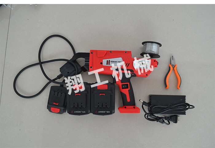 整機清單:全自動鋼筋捆扎機一臺,鋰電池兩塊,充電器一只,鐵絲鉗一把,絲盤一個,使用說明書一本。