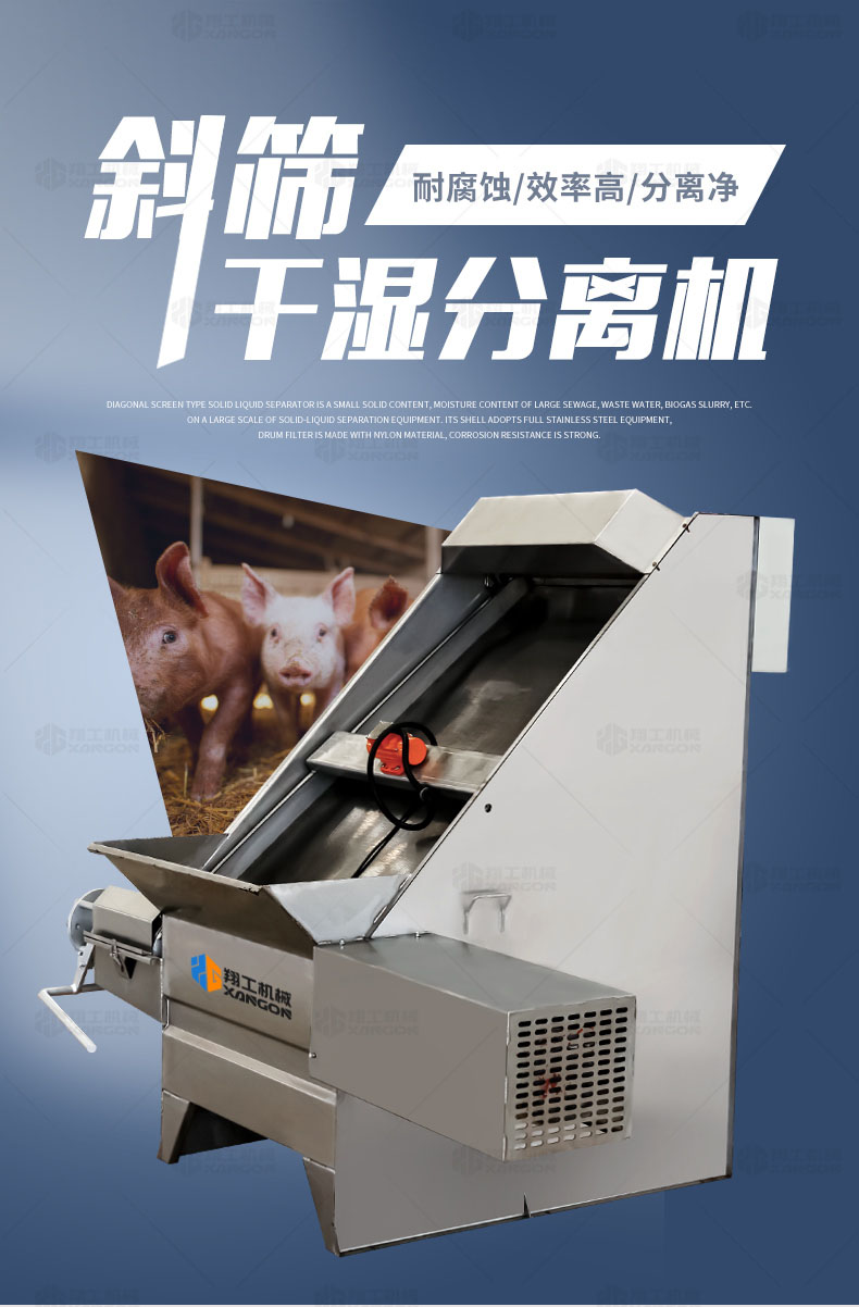 斜篩式固液分離機(jī)是一款針對(duì)含固率較小,含水率較大的污水、糞水、沼液等進(jìn)行大規(guī)模固液分離的設(shè)備。其設(shè)備外殼采用全不銹鋼打造,圓筒濾網(wǎng)則采用尼龍材質(zhì)制成——耐腐蝕性強(qiáng)。