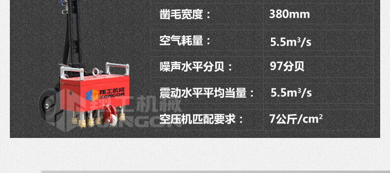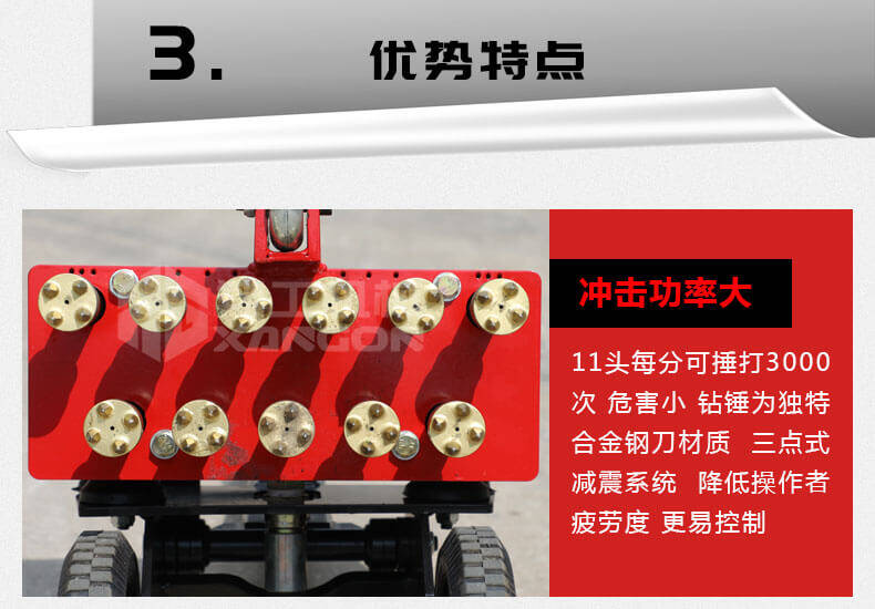 1、11個鑿毛頭的沖擊功率大,可達2200blow/分鐘,危害??;
