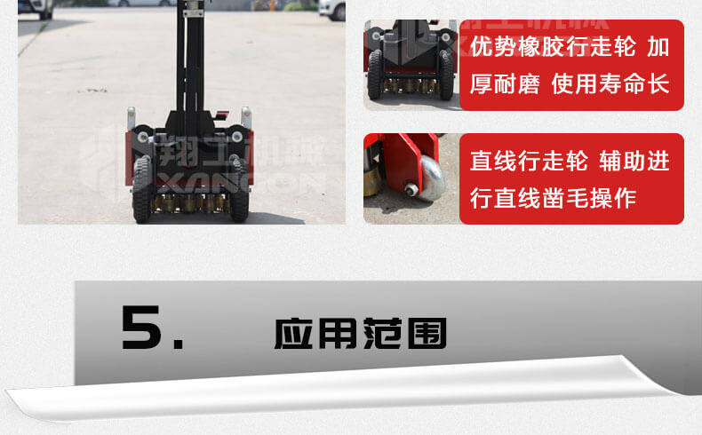 8、震動傷害小。 鑿毛機可在對主體無任何破壞的情況下,在1-100mm鑿剔深度之間自由掌控,鑿除混凝土表面光滑面積可達100%,鑿毛能力可根據(jù)混凝土的不同強度和深度,每小時可達到4m2--100m2的工作量。與傳統(tǒng)鑿毛工藝相比,可明顯加速工程進度,降低勞動消耗,減少環(huán)境污染,節(jié)省工程造價,實現(xiàn)理想的工程質(zhì)量,具有廣闊的市場前景。
