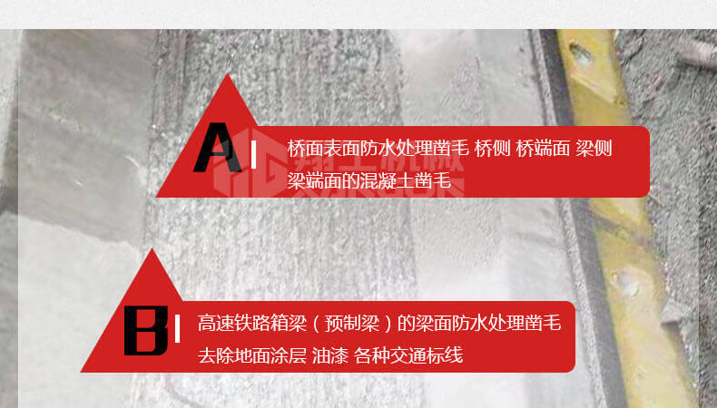 11頭鑿毛機適用于路面、橋面等基面混凝土結(jié)構(gòu),去除混凝土表面的浮漿皮,同時減少對凝土層的破壞,有效防止?jié)B水,避免水份在混凝土中凍結(jié)引起的混凝土龜裂。