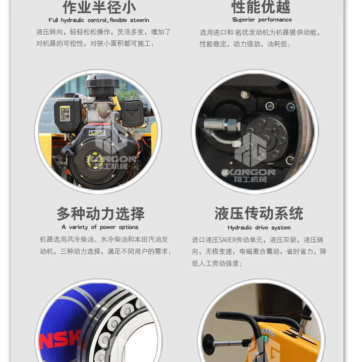 4.發(fā)動機電啟動,機器振動電磁離合控制,操作更加輕松方便;