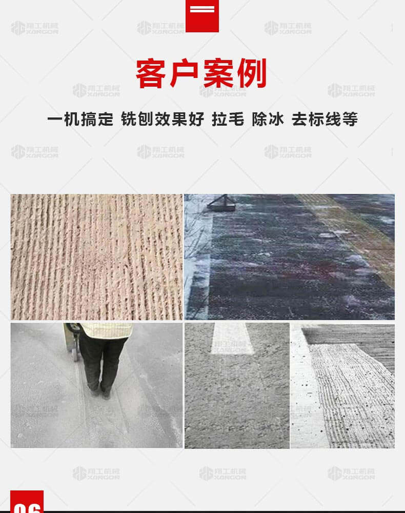 用于橋面鋪設(shè)瀝青或車間舊的混凝土地面重新攤鋪混凝土之前,清理水泥浮漿以及鏟平拉毛,也用于清理建筑施工中堅(jiān)硬灰渣。