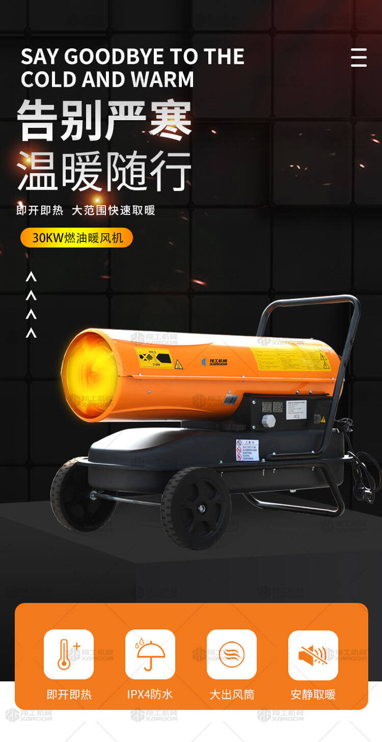 30KW燃油暖風(fēng)機(jī)適用范圍: 工廠車間,物資倉庫,防潮烘干,局部采暖 建筑工地,道路橋梁,水泥養(yǎng)護(hù),野外采暖 石油鉆井,煤炭礦區(qū),除冰防凍,設(shè)備保溫 鐵路機(jī)場,游艇船舶,油漆干燥等等。