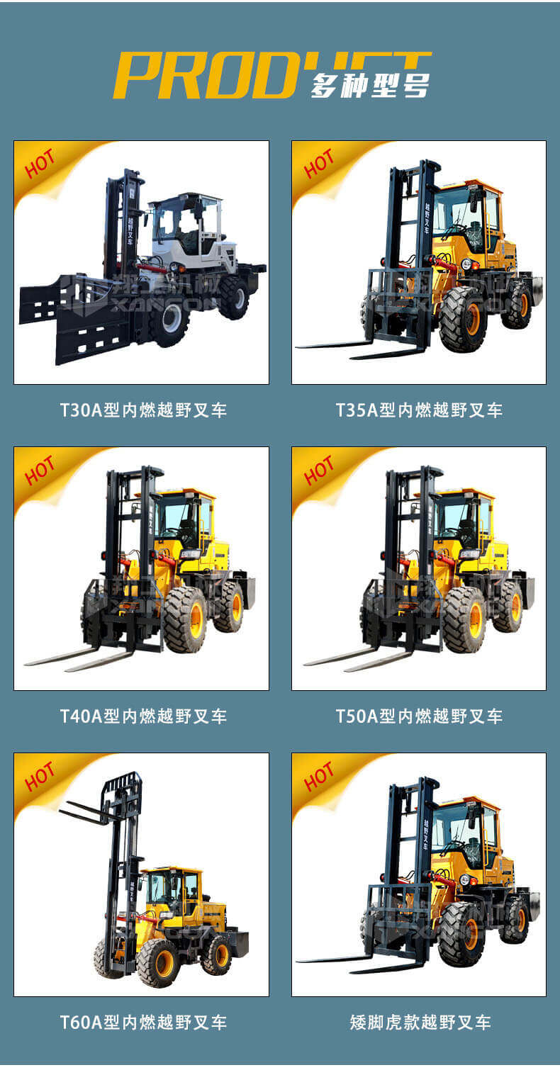 多功能越野叉車可以在坡地和不平地面上進(jìn)行貨物裝、卸、堆垛及搬運(yùn)作業(yè),具有良好的機(jī)動性、越野性可靠性。其功能多樣,可搭配側(cè)移器、調(diào)距叉、旋轉(zhuǎn)器、軟包夾、推出器、側(cè)翻叉、側(cè)翻斗、起重臂等工具完成不同的工作。