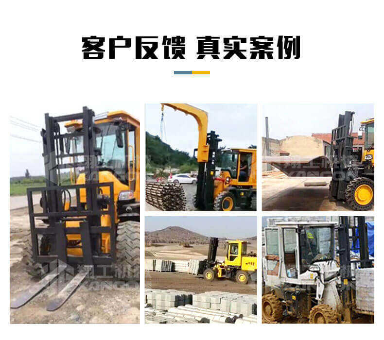 3.普通叉車只能在平整的路面上作業(yè),而越野叉車既可以在普通路面上作業(yè),還可以在山路泥路崎嶇道路作業(yè),輪胎抓地力強(qiáng),不打滑。