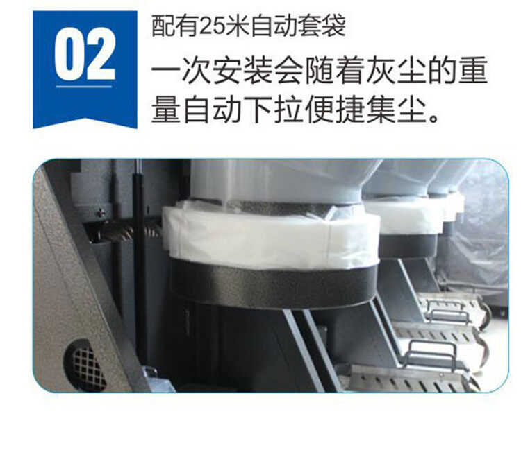 2.配有25米自動套袋,一次安裝會隨著灰塵的重量自動下拉,非常便捷,而且節(jié)省清潔時(shí)間。