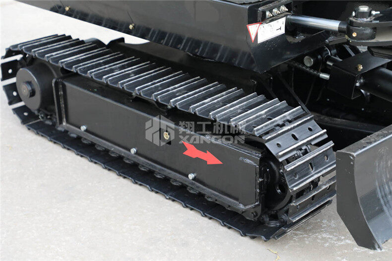 4、行走部分加裝兩個(gè)托鏈輪,減少了橡膠履帶的磨損,降低了摩擦的噪音,提高了橡膠履帶的使用壽命。