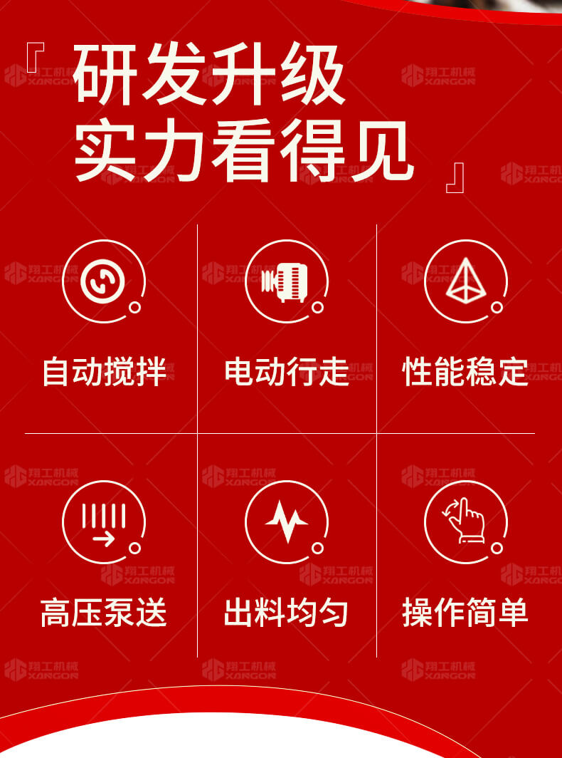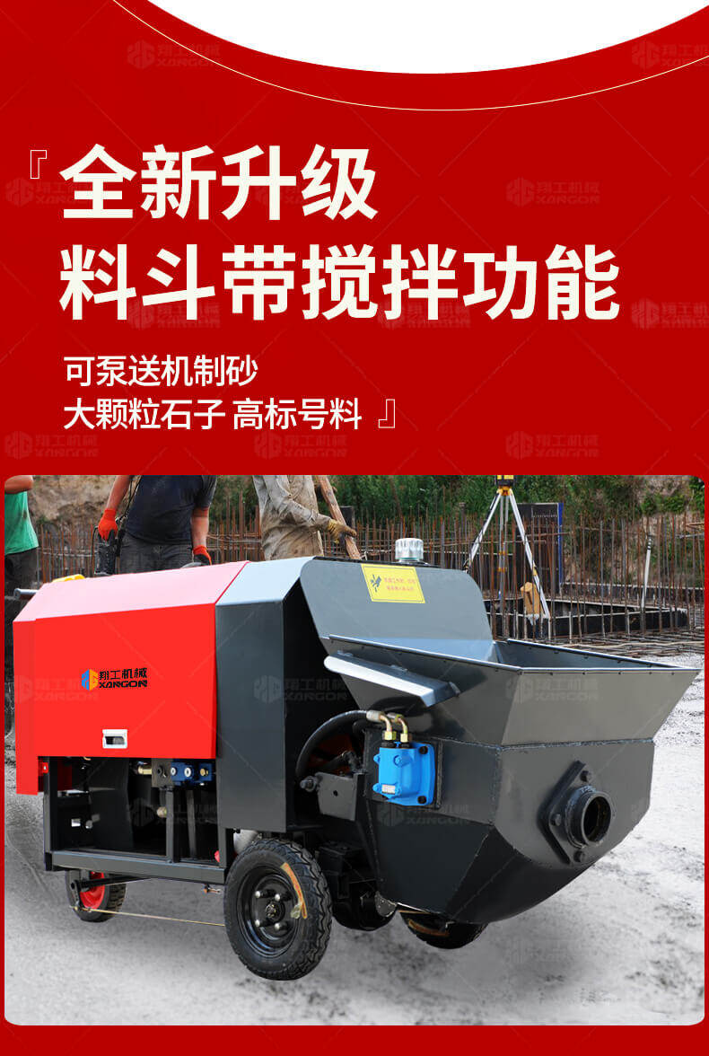 本產(chǎn)品為電動(dòng)行走臥式造型混凝土輸送泵,料斗帶攪拌功能,可泵送機(jī)制砂;風(fēng)冷散熱,散熱效果好;集成芯片控制箱,多條備用線路獨(dú)立設(shè)計(jì),不用擔(dān)心控制系統(tǒng)問題;操作部件采用24v 安全感應(yīng)電壓,安全可靠;S 彎采用兩個(gè)單向油缸,速度均勻。