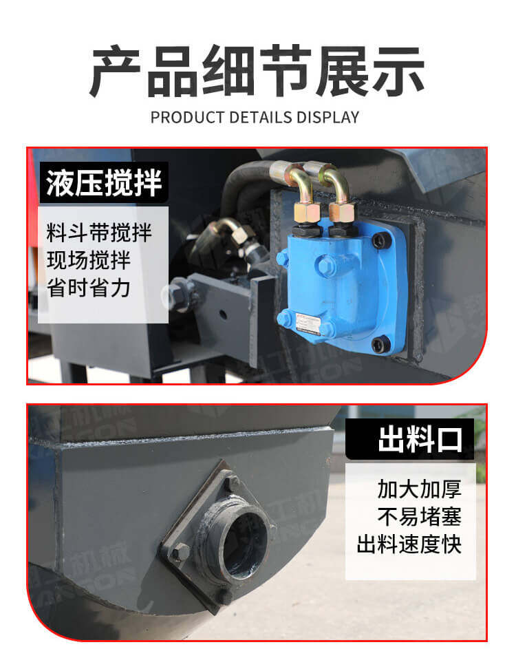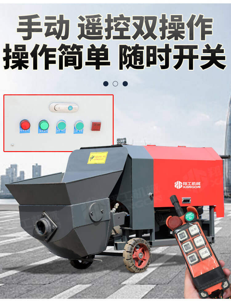 本產(chǎn)品為手推式行走臥式造型輸送泵,料斗帶攪拌功能,可泵送機(jī)制砂;風(fēng)冷散熱,散熱效果好;集成芯片控制箱,多條備用線路獨(dú)立設(shè)計(jì),不用擔(dān)心控制系統(tǒng)問(wèn)題;操作部件采用24v 安全感應(yīng)電壓,安全可靠;S 彎采用兩個(gè)單向油缸,速度均勻。